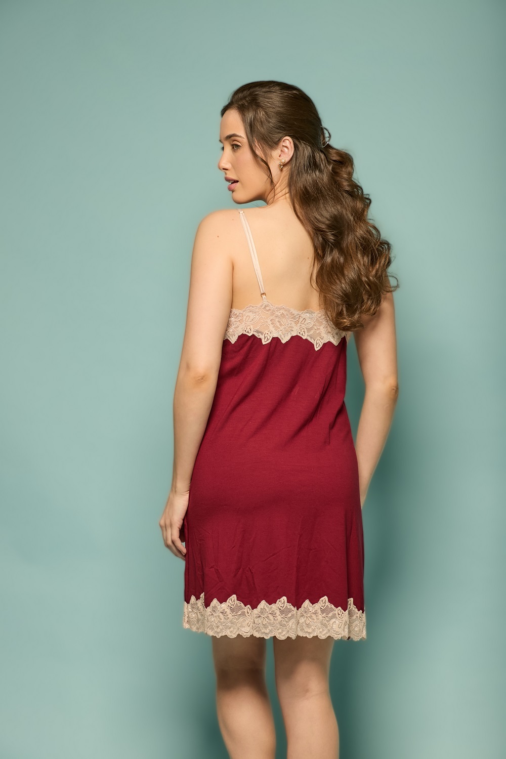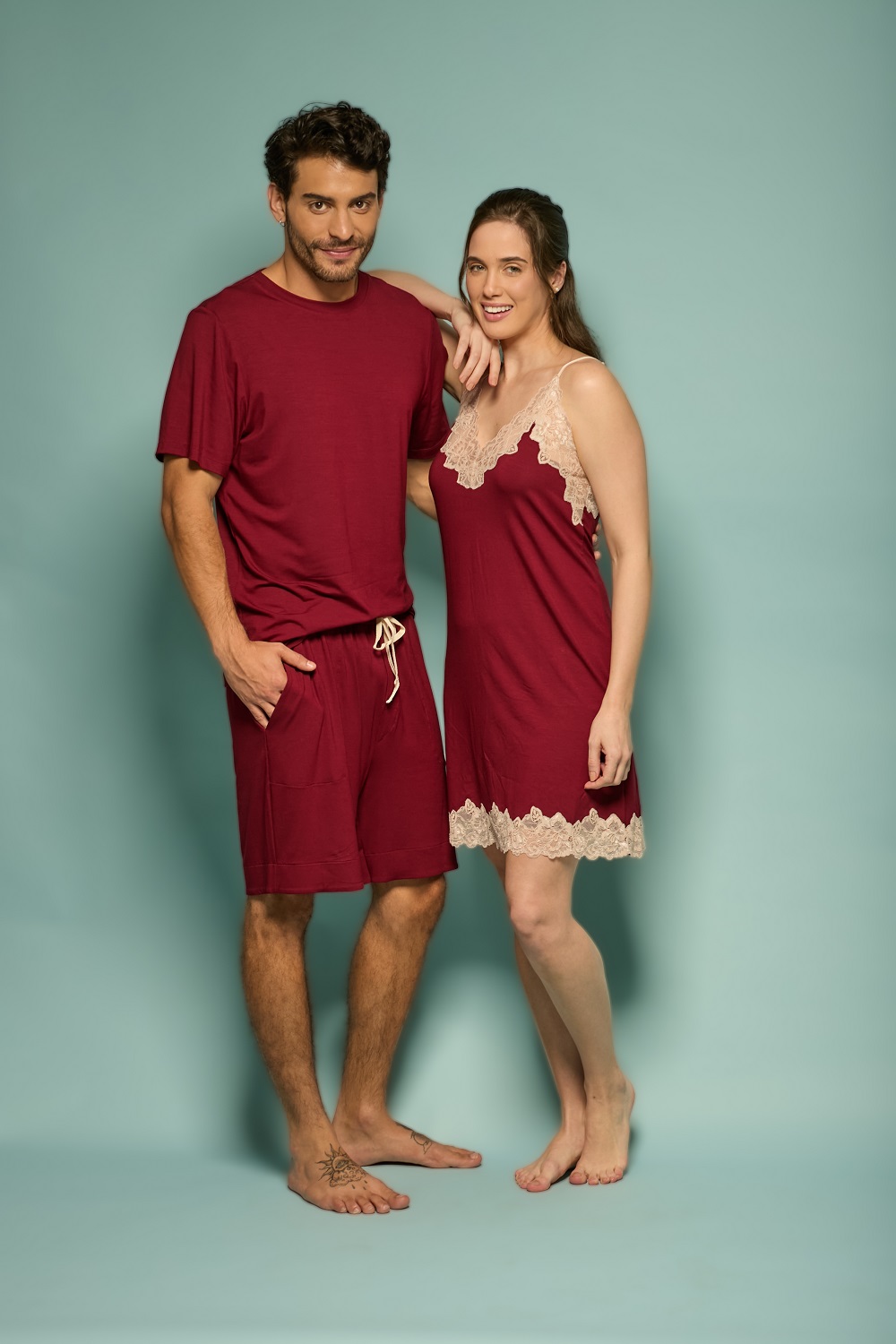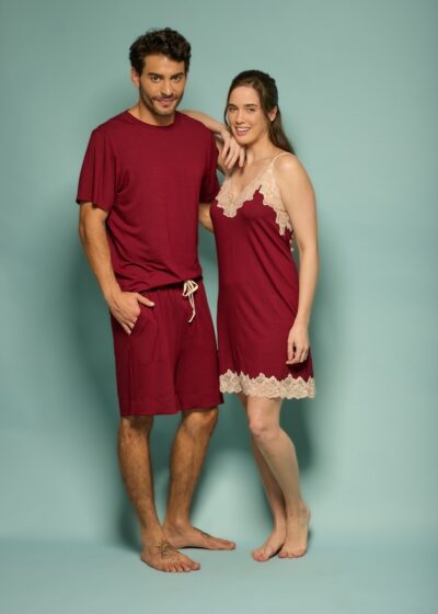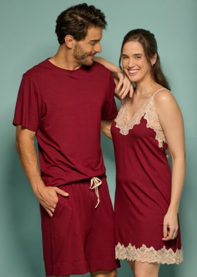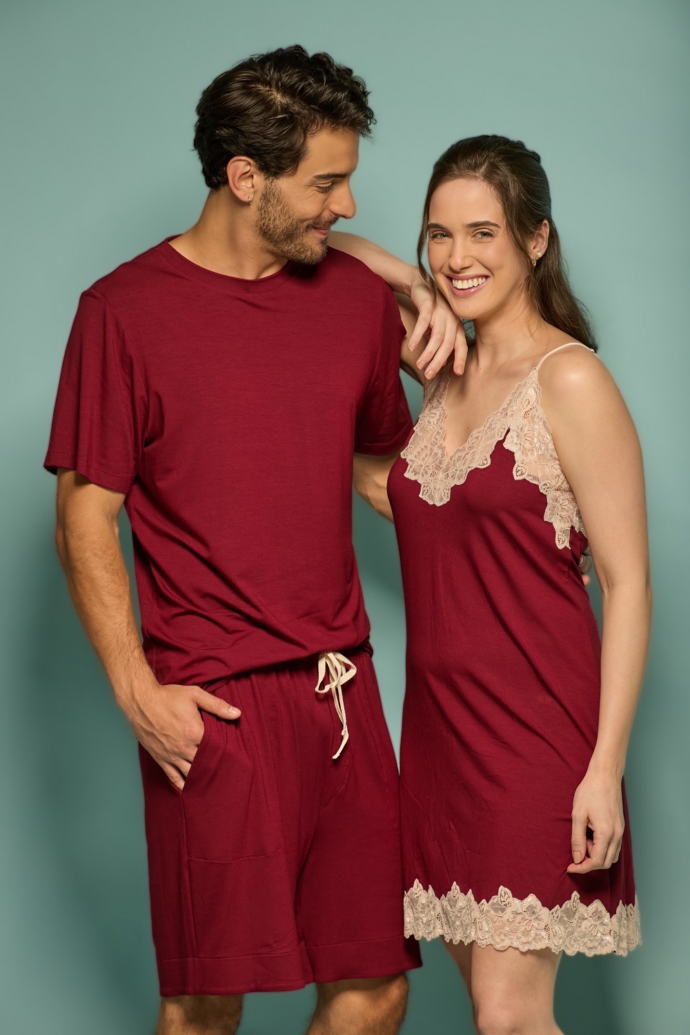 Quando a casa desacelera e a noite pede um respiro, é bom ter uma peça que convida ao descanso sem abrir mão da beleza. Você veste e sente o tecido deslizar com leveza — nada aperta, nada pesa — e o tom bordô cria aquele clima acolhedor que combina com silêncio e luz baixa.