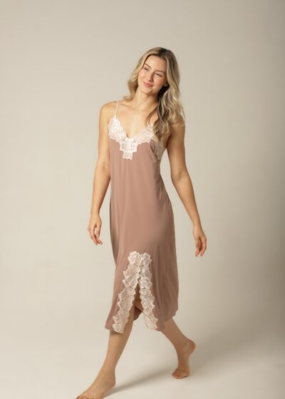 A cor avelã, tendência sofisticada da estação, traz calor, modernidade e versatilidade ao visual. Esse tom neutro e elegante valoriza todos os tons de pele e transmite aconchego e requinte. Perfeito para quem busca um pijama moderno, feminino e alinhado às tendências da moda sleepwear, ele eleva o conceito de roupa de dormir a um novo patamar de estilo.