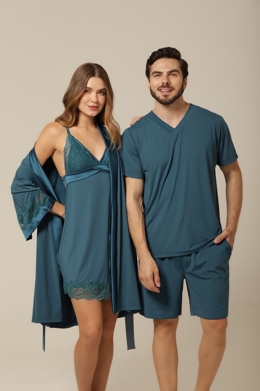 O Pijama Masculino em Tecido Fluity é a escolha ideal para quem busca noites mais leves e revigorantes nos dias quentes. Desenvolvido com uma malha de alta tecnologia, o fluity proporciona toque fresco, caimento leve e uma sensação refrescante na pele. Esqueça o incômodo de tecidos pesados e quentes — este pijama abraça o corpo sem apertar e oferece liberdade total de movimentos para uma noite tranquila e confortável.