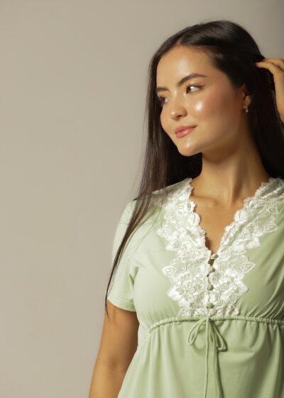 A renda off-white aplicada com delicadeza destaca o design feminino e sofisticado do pijama. Cada detalhe foi pensado para criar um visual harmonioso e luxuoso, que valoriza a silhueta com discrição e charme. Um acabamento que transforma o pijama em uma peça especial, ideal para presentear ou para quem deseja se sentir confiante e bem vestida em casa.