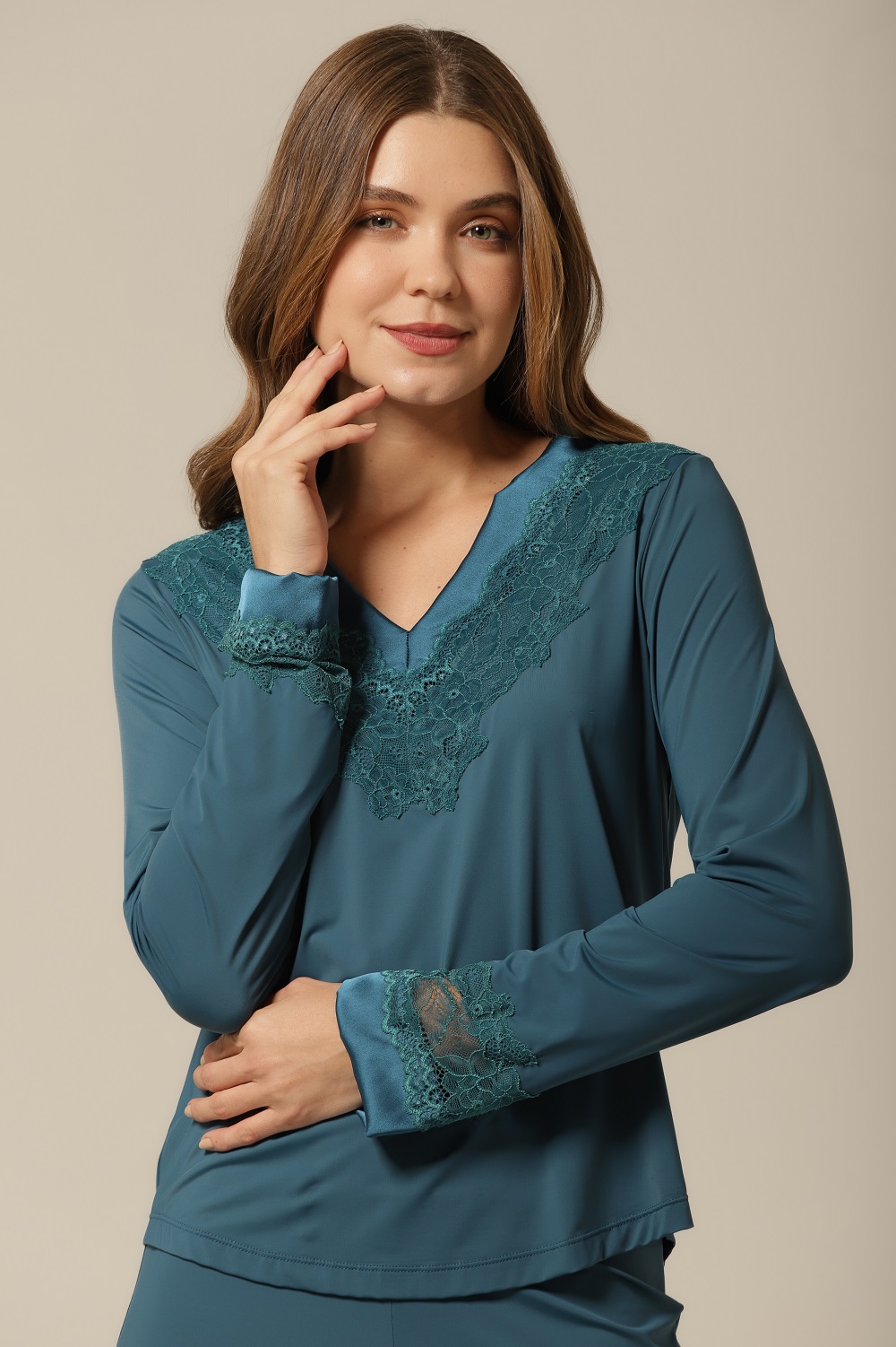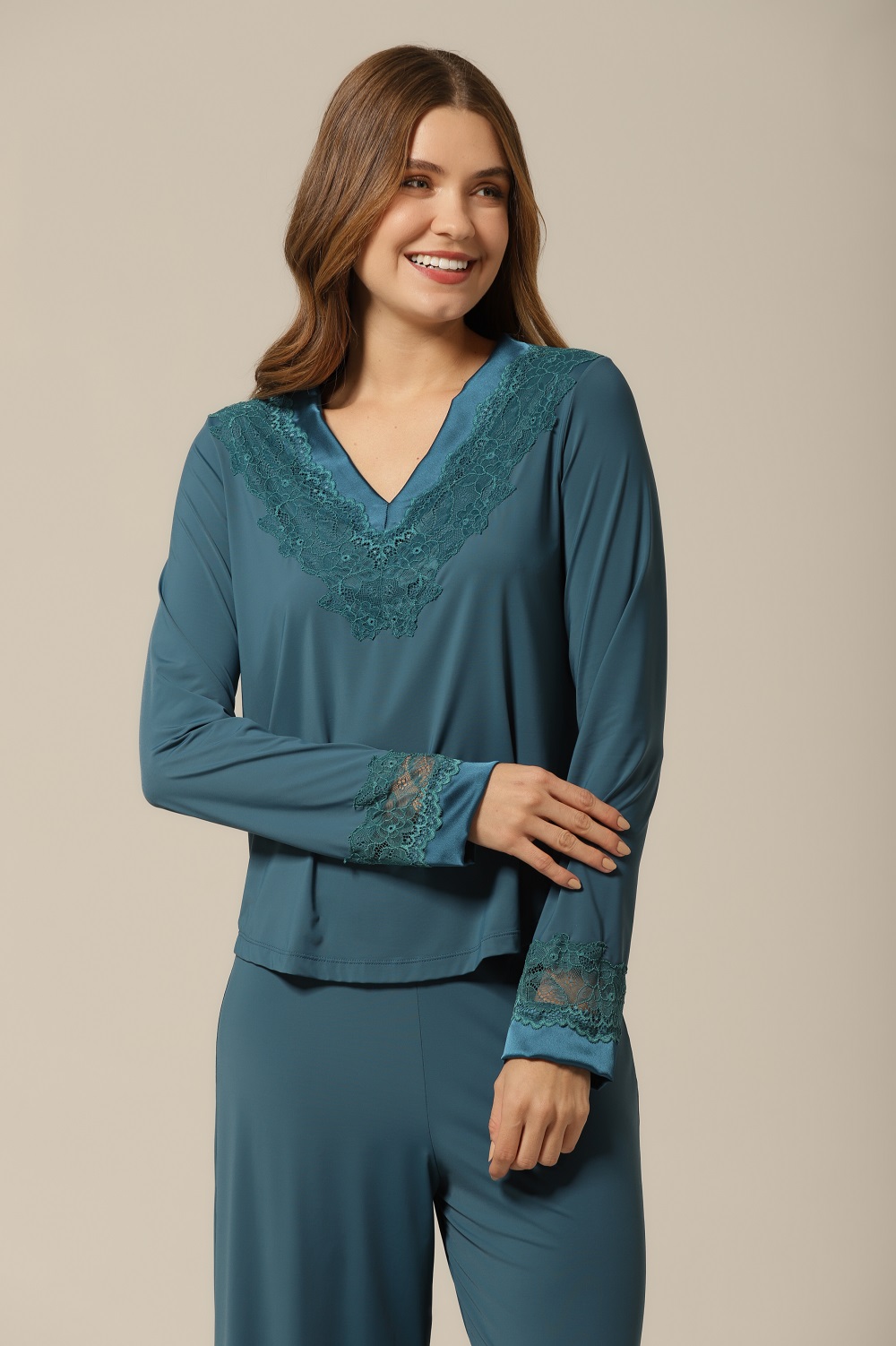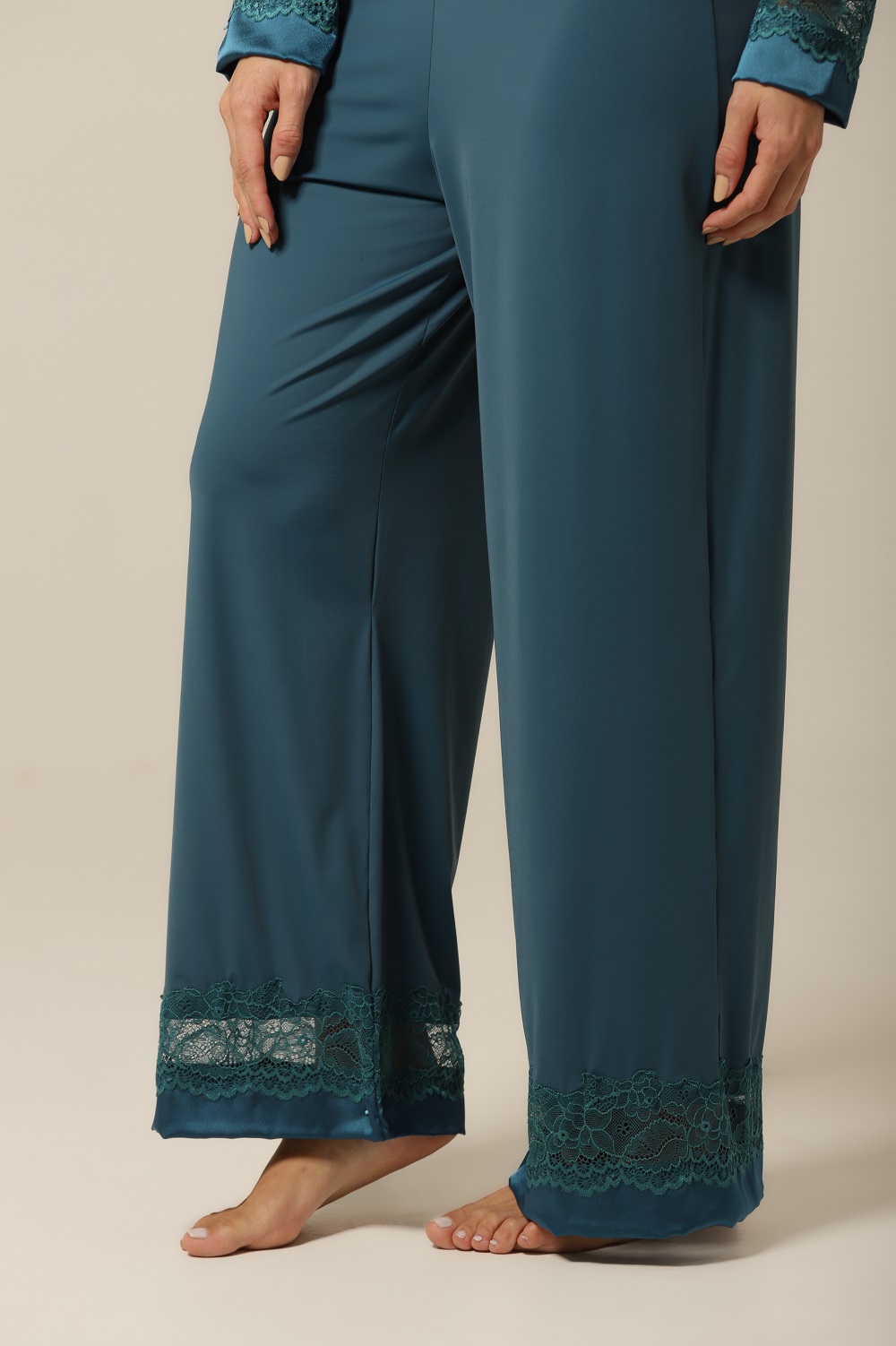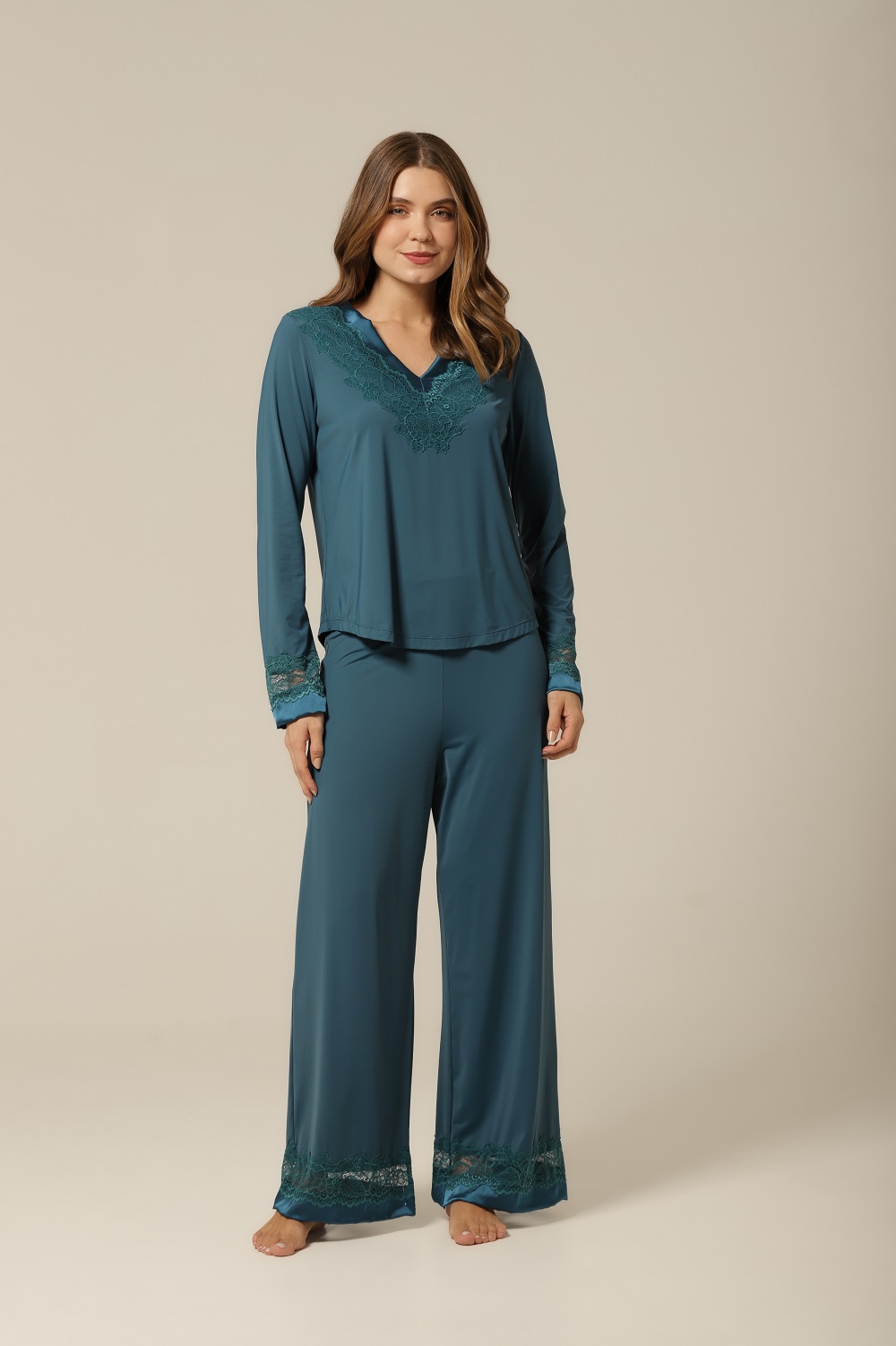 O diferencial desta bata está nos seus delicados detalhes em cetim e renda no decote, criados para valorizar ainda mais sua feminilidade. A renda aplicada com precisão adiciona um toque romântico e sensual, enquanto o cetim traz sofisticação e brilho na medida certa. Esses acabamentos transformam um simples pijama em uma peça exclusiva, ideal tanto para noites especiais quanto para tornar qualquer dia mais bonito. Um mimo para si mesma ou um presente memorável.