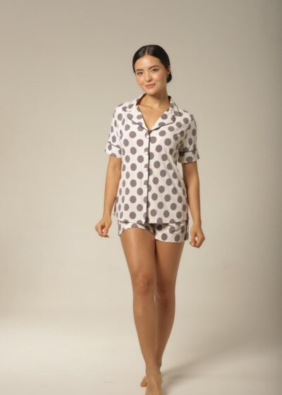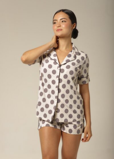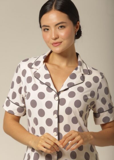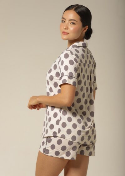 Conjunto Short Clássico M. Curta – Fluity Poá Cinza – Col. Emoções
