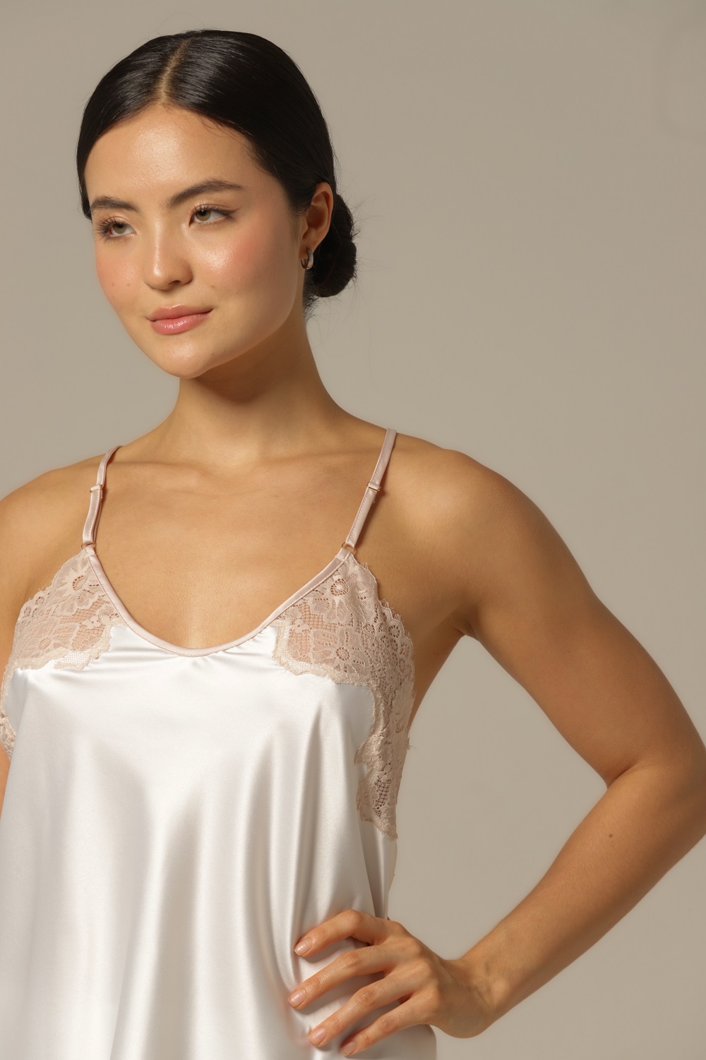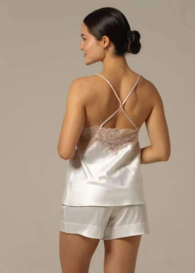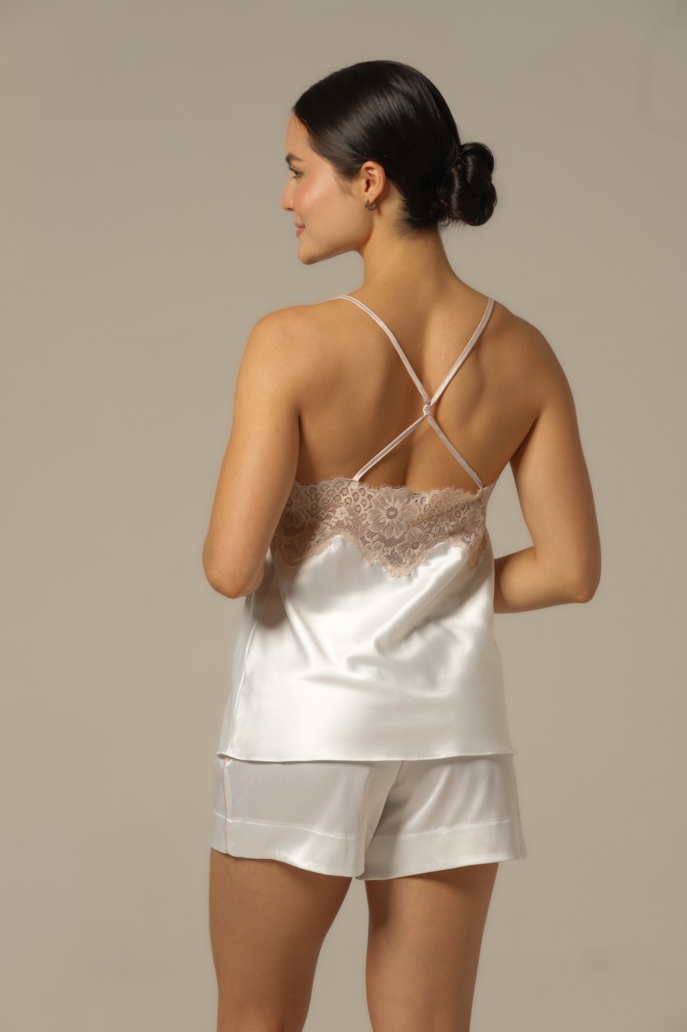 Conjunto Short Doll Alça – Cetim Off – Col. Raios e Renda