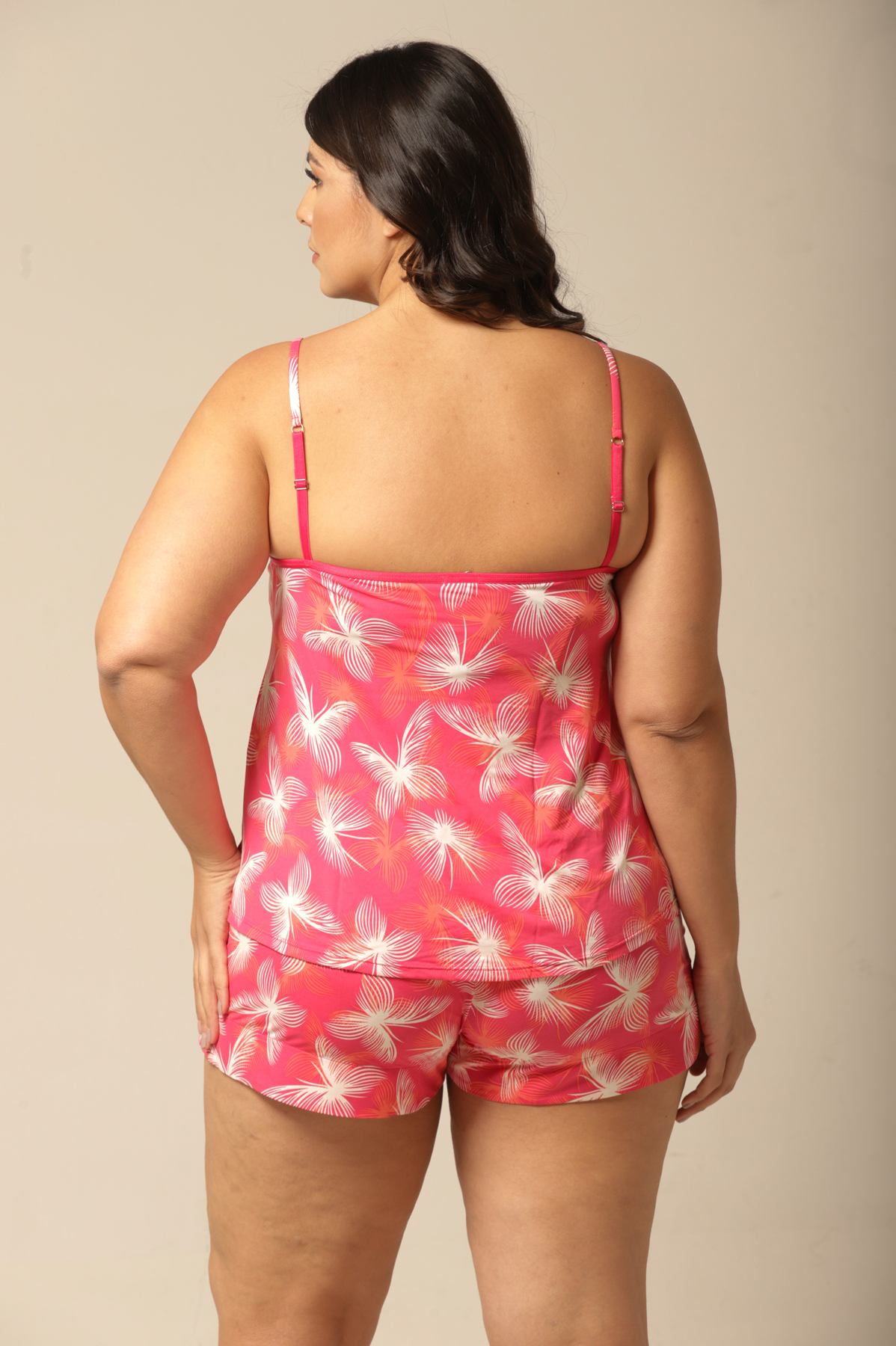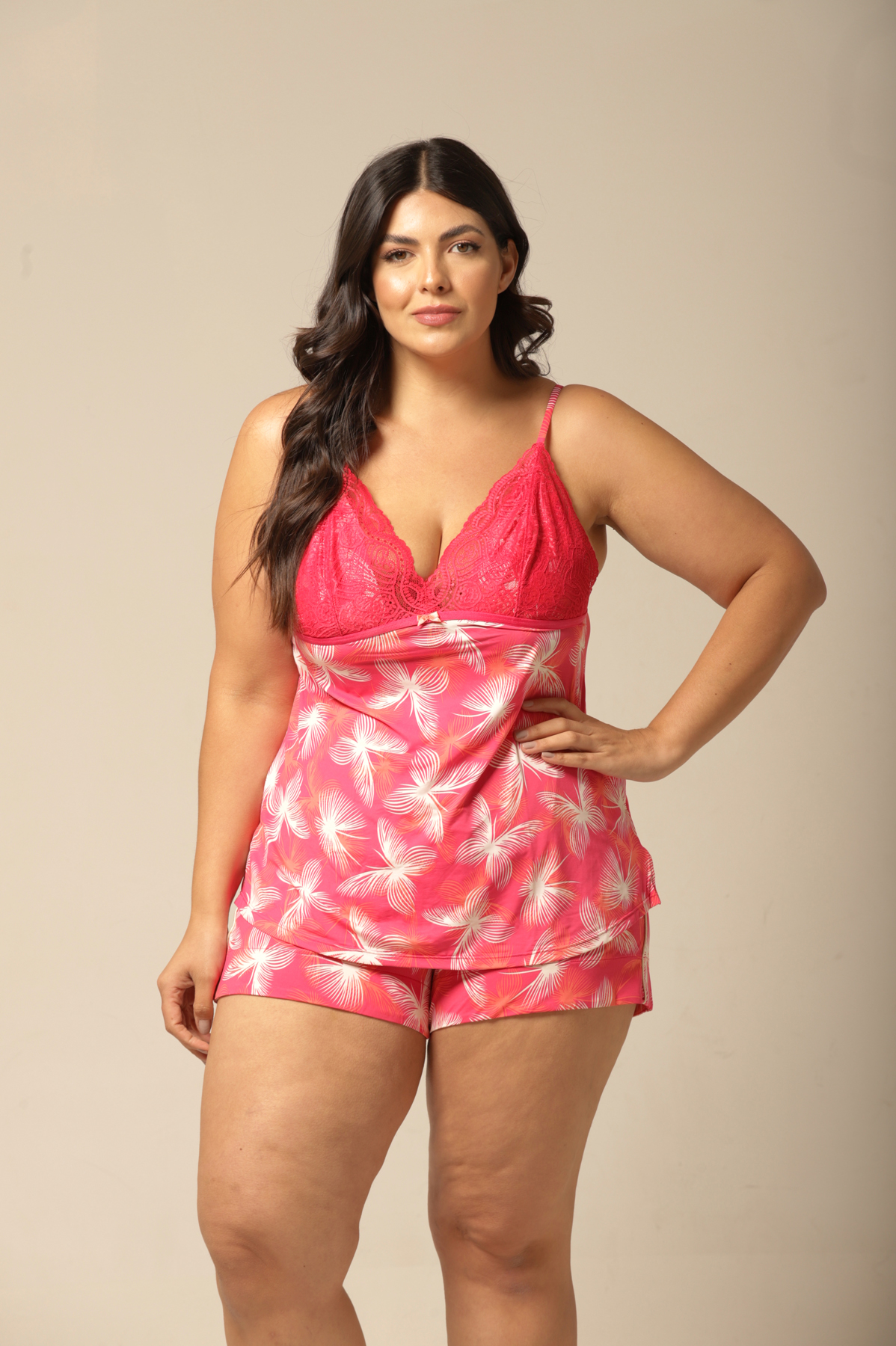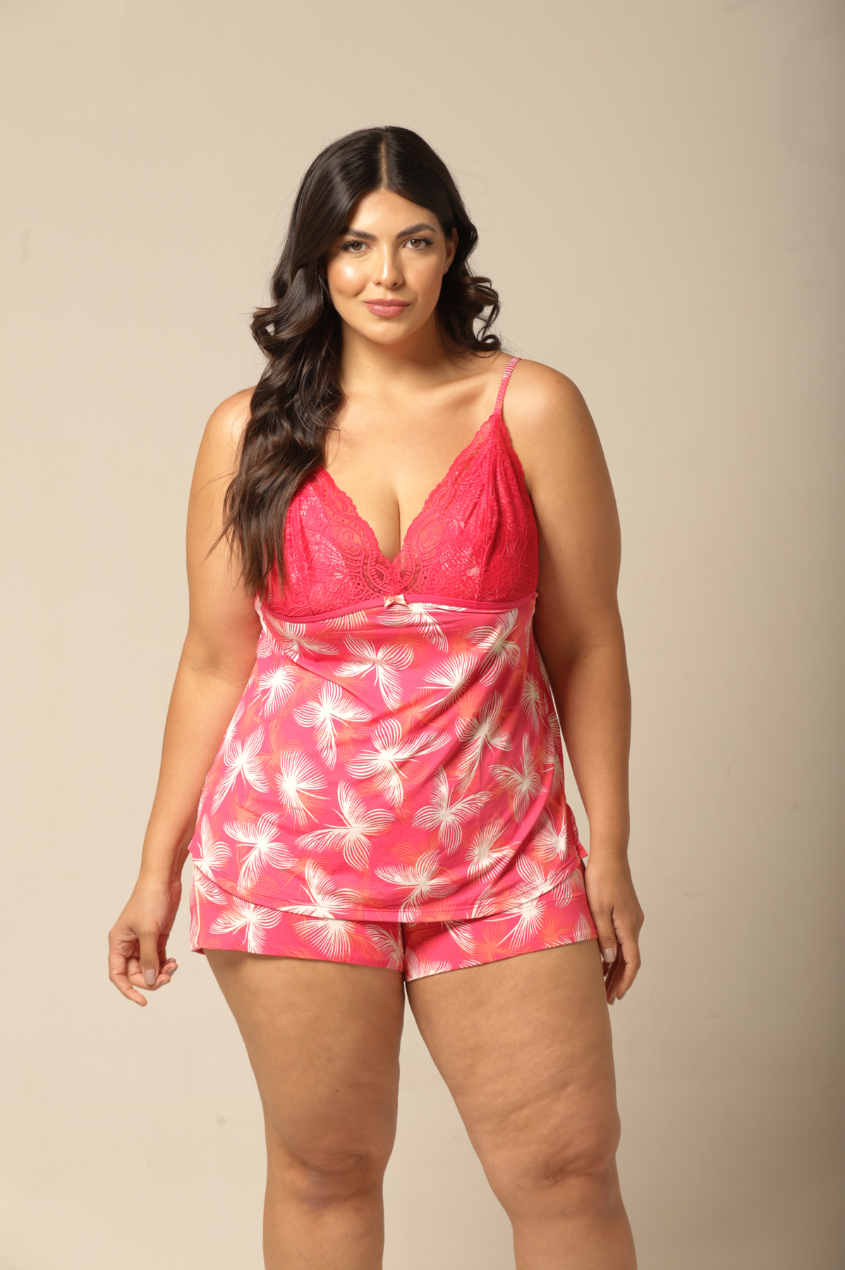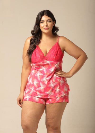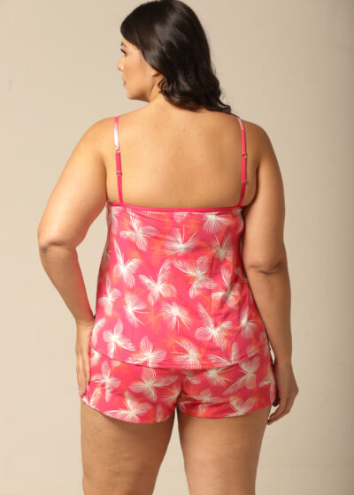 Conjunto short doll, com alças reguláveis em estampa exclusiva e moderna de borboletas, com renda aplicada delicadamente no decote. Confeccionado em estampa exclusiva de fluity.