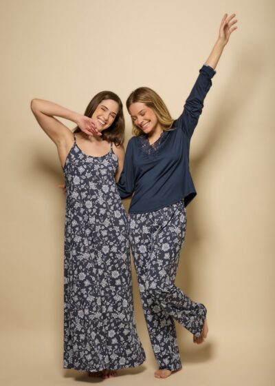 O homewear confeccionado em fluity estampado foi desenvolvido para oferecer máximo conforto com um toque sofisticado. O tecido é leve, macio e extremamente agradável à pele, proporcionando liberdade de movimento e bem-estar ao longo do dia. Além disso, o fluity se destaca pela alta durabilidade, mantendo sua beleza e caimento mesmo com o uso frequente.