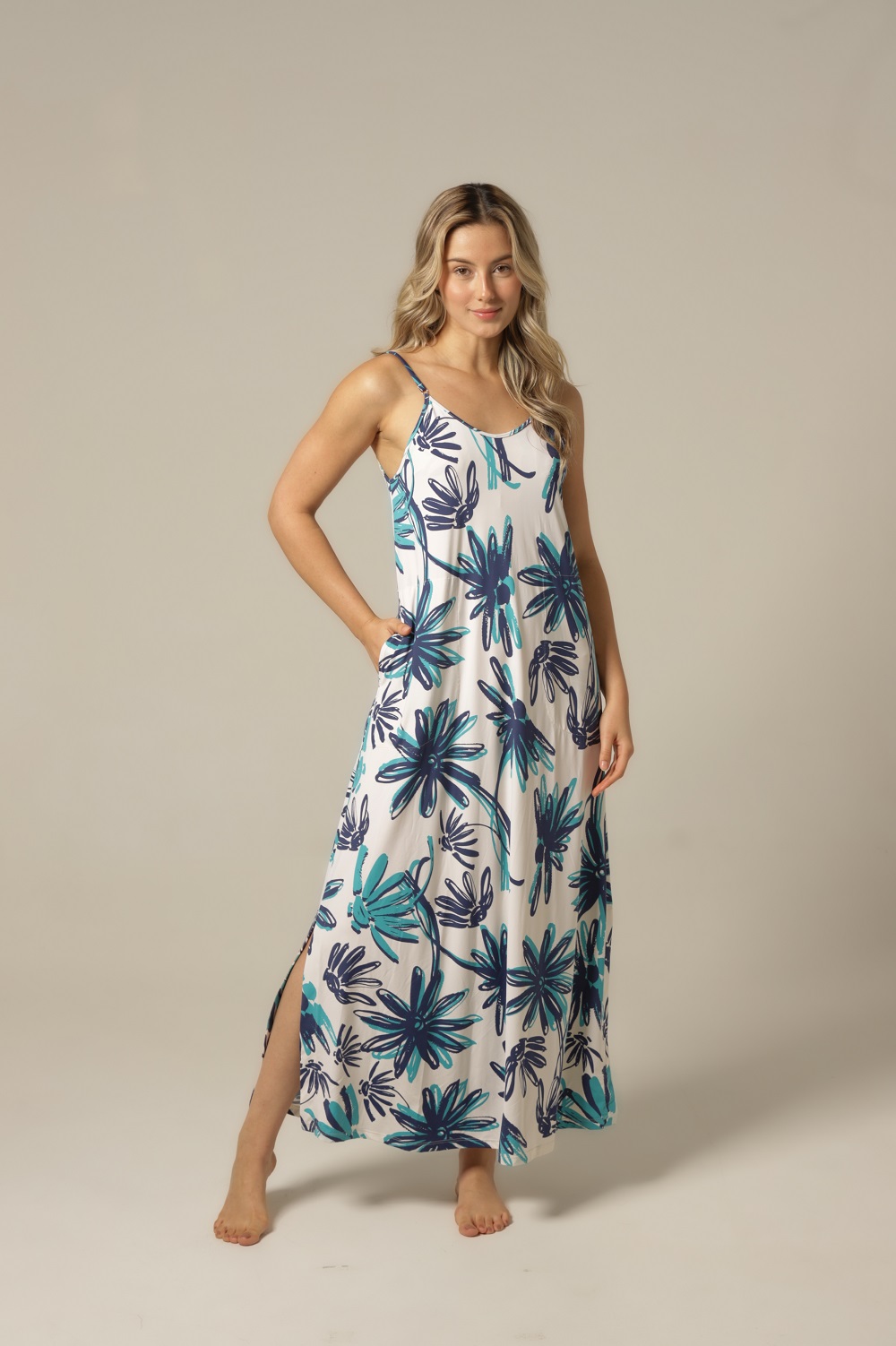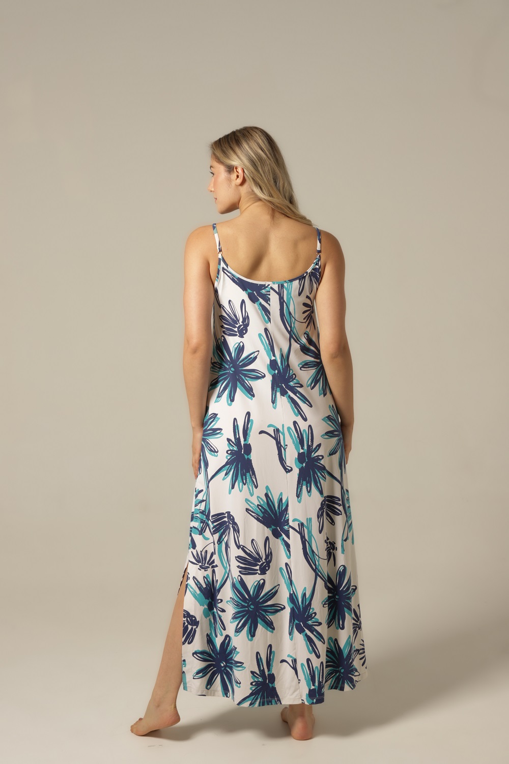 O destaque deste kaftan está nos seus detalhes delicados: e escolha das cores, em fundo off-white. O Fluity leve, criando um acabamento refinado que valoriza a silhueta sem marcar. Cada elemento do design foi pensado para que você se sinta bonita, confortável e confiante — seja para descansar, relaxar ou viver momentos de autocuidado.