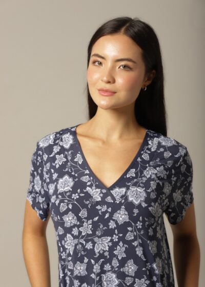 O homewear confeccionado em fluity estampado foi desenvolvido para oferecer máximo conforto com um toque sofisticado. O tecido é leve, macio e extremamente agradável à pele, proporcionando liberdade de movimento e bem-estar ao longo do dia. Além disso, o fluity se destaca pela alta durabilidade, mantendo sua beleza e caimento mesmo com o uso frequente.