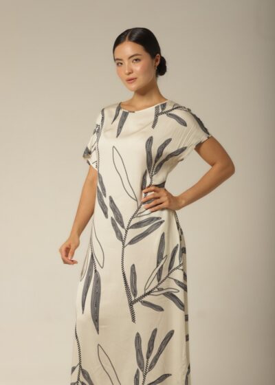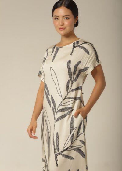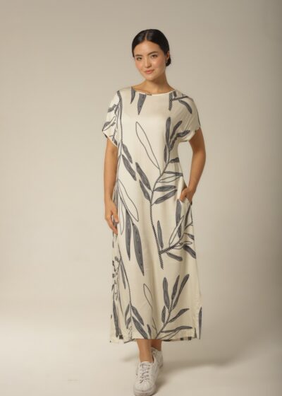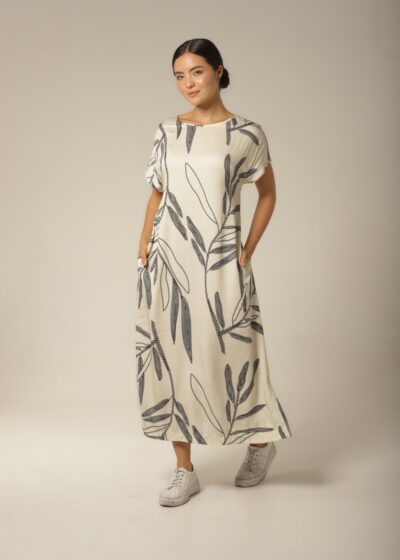 Kaftan Midi – Rayon Floral – Col. Sombra e Água